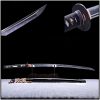 This handmade, fully functional katana measures 103 cm in length, featuring a full-tang blade constructed from folded Damascus steel. The black wood saya and brass fittings provide durability and aesthetic appeal. Each sword is carefully polished and sharpened by skilled swordsmiths, making it not only a display-worthy item but also a collector’s treasure. Sword holder or stand sold separately.