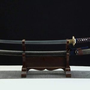 This handmade katana measures 103 cm in length and features a full tang blade, ensuring stability and balance during use. The blade is expertly polished and sharpened by skilled swordsmiths, making it not only a stunning display piece but also a fully functional weapon. The hardwood saya and silver plating alloy fittings add to its elegance and authenticity. Note that a sword holder or stand is sold separately to complement this exquisite piece.