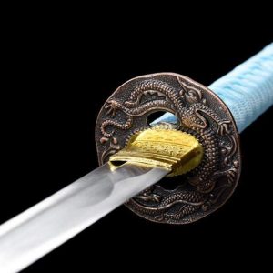 The Katana Longlan Carbon Steel Black Saya is a remarkable piece that combines tradition with modern aesthetics. Crafted with a carbon steel blade, this sword offers exceptional durability and strength, making it not only a visually striking item but also a functional weapon. The sleek black saya enhances its elegance and complements its timeless design.