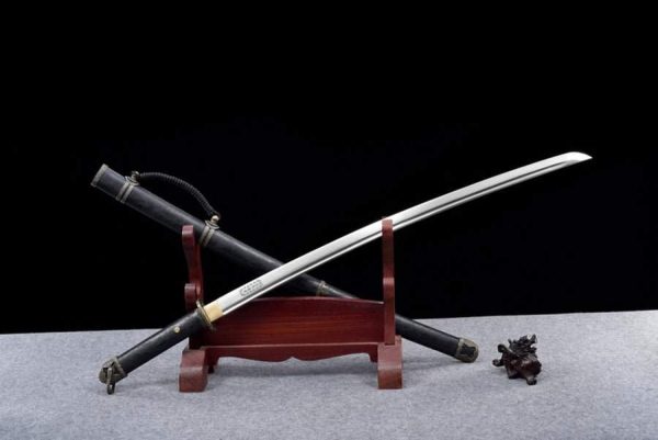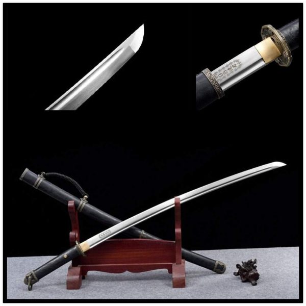 Measuring 101 cm in length, this handmade full-function katana sword boasts a full tang blade for optimal balance and handling. The combination of hardwood and leather saya not only adds to its aesthetic appeal but also ensures that the blade remains protected during transport. The brass fittings enhance the sword’s traditional look, making it a standout piece in any collection.